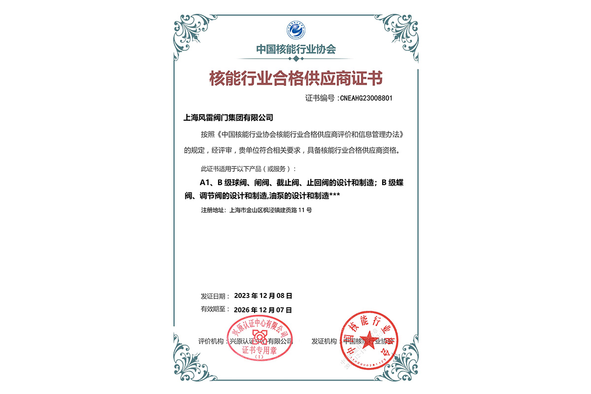 核能行業(yè)合格供應(yīng)商證書(shū)