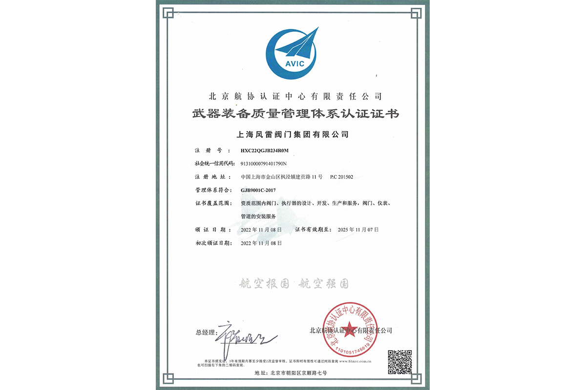 GJB9001C國(guó)軍標(biāo)質(zhì)量體系證書(shū)